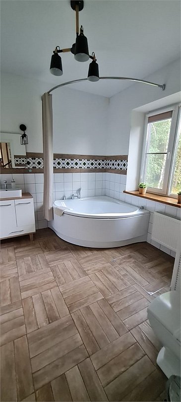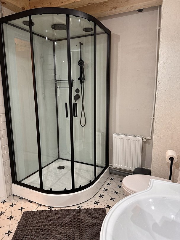 В доме два этажа + цокольный этаж, веранда. 5 комнат, полноценная кухня, 4 с/у (душ + туалет).