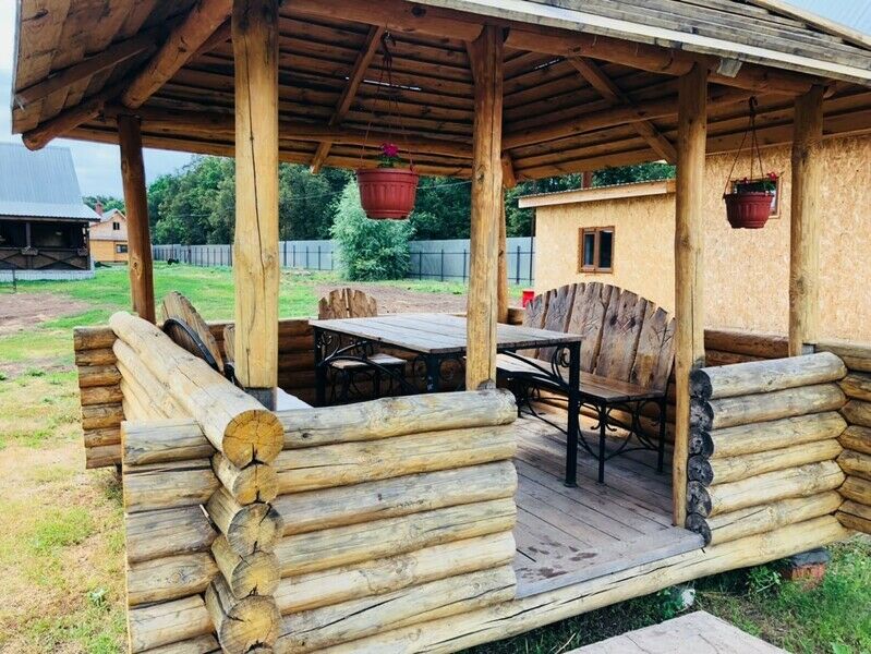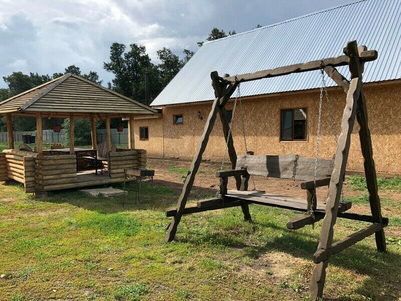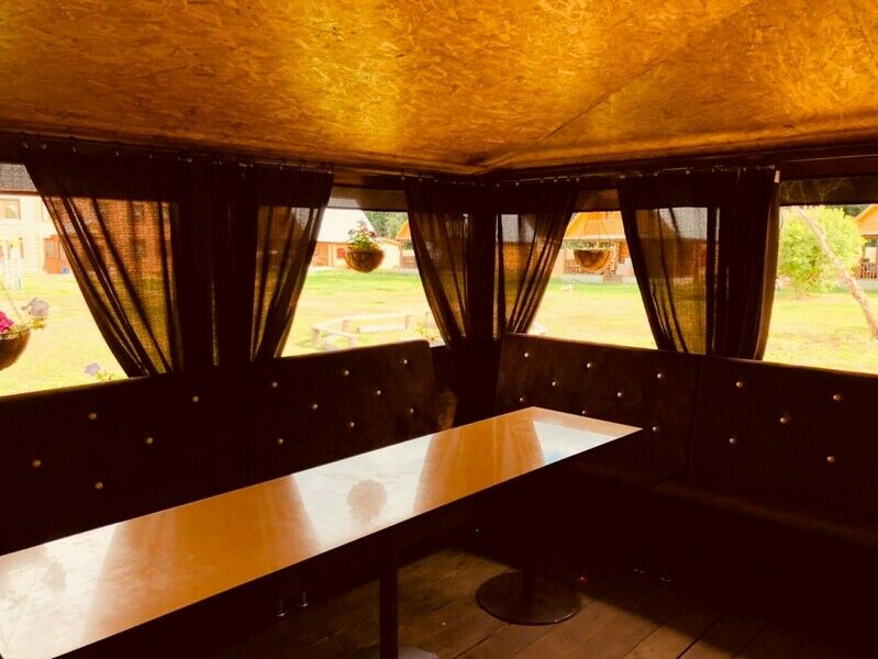 Столы, мягкие диванчики, лавочки, холодильник, освещение. Мангал.Стоимость:
