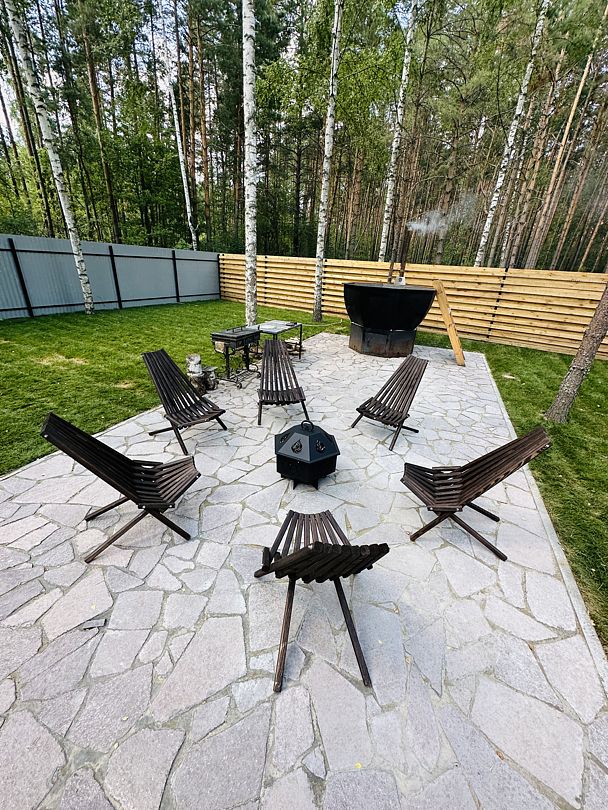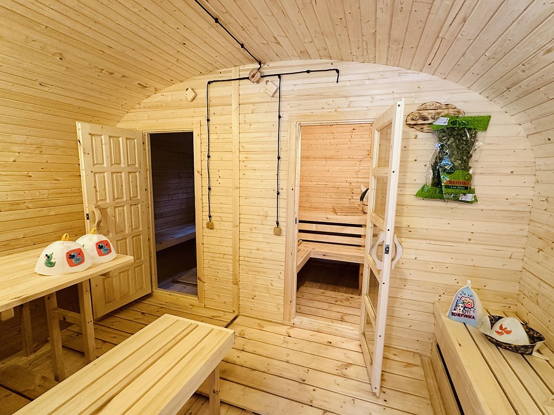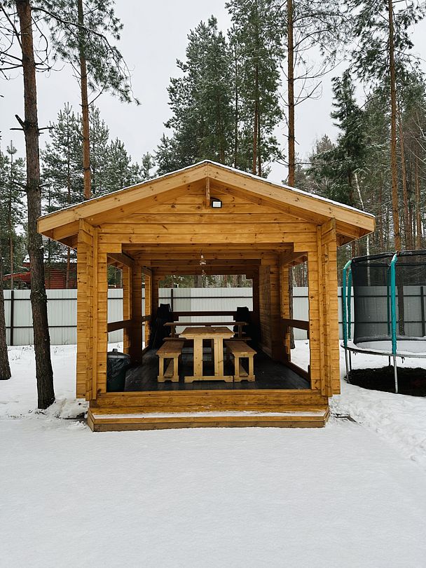 У дома вы найдете большую беседку для отдыха на свежем воздухе, банный чан для тех, кто предпочитает оздоровительный отдых, и мангальную зону для уютных вечеров за барбекю.