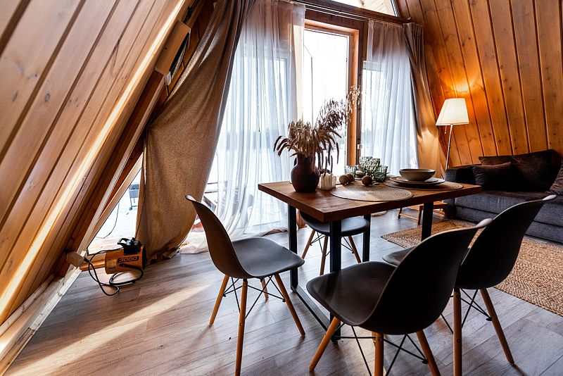 Глэмпинг «Орехово Лес» — это четыре полностью оборудованных домика-а-фрейма, каждый из которых рассчитан на размещение до четырёх человек. По договорённости можно приезжать с домашними животными.