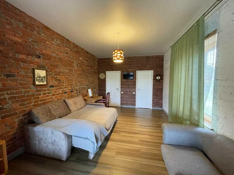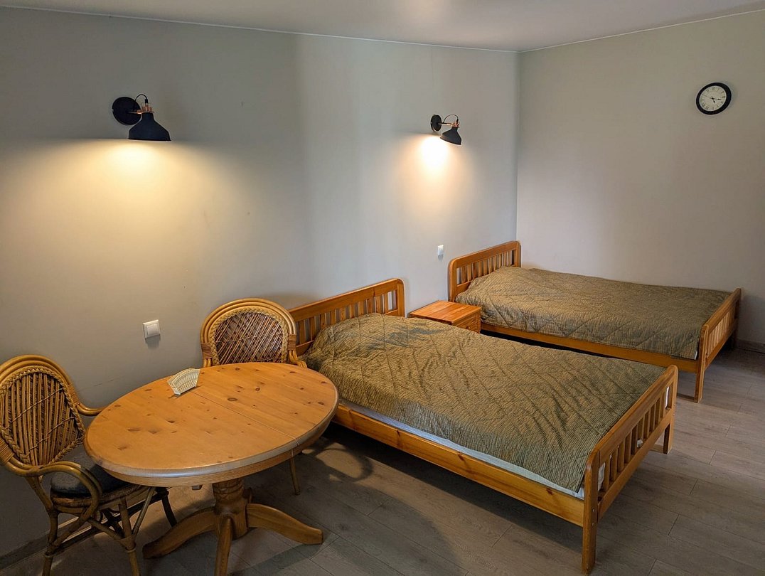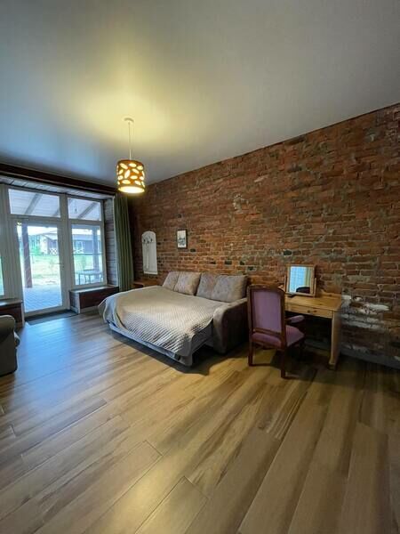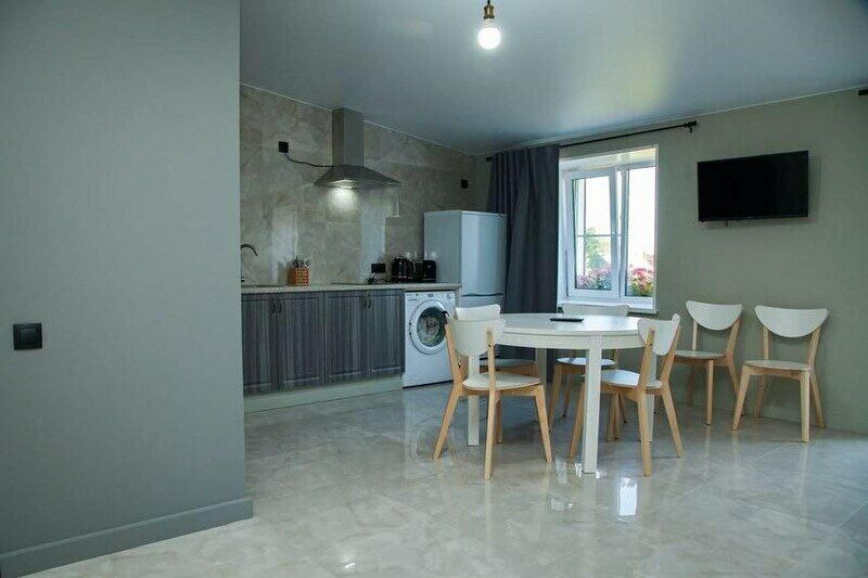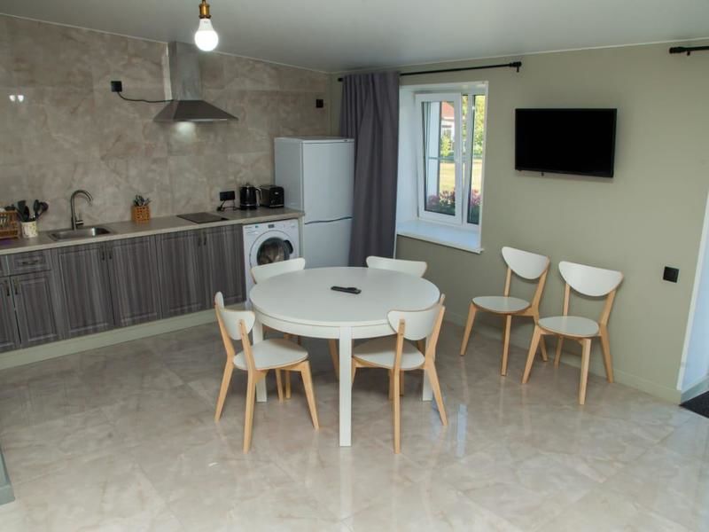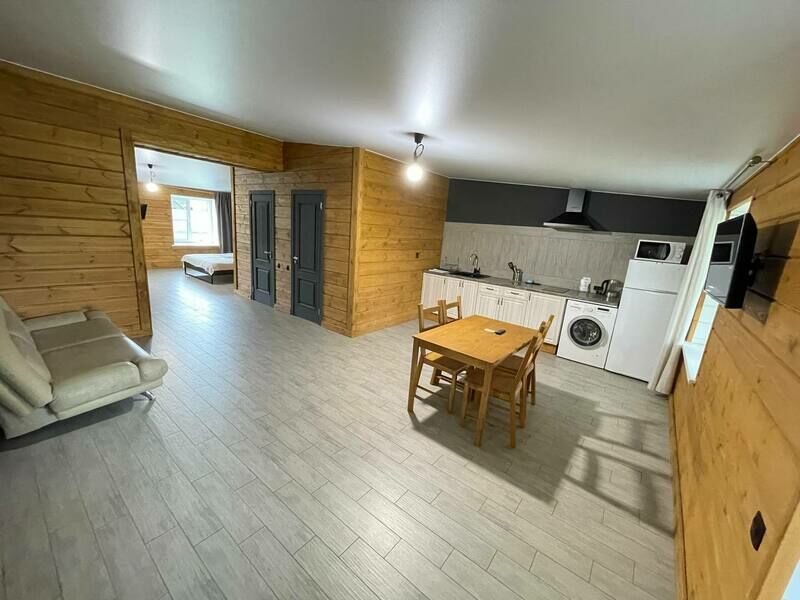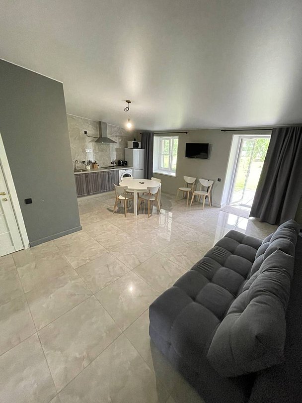 Гостевой дом №1 рассчитан на 20 человек (10 спальных мест): 4 раздельных комнаты, 2 туалета, кухня, гостиная, теннисный стол, минифутбол. Есть веранда, закрытая парковка. Финская сауна, хамам и русская баня. Мангальная зона.
