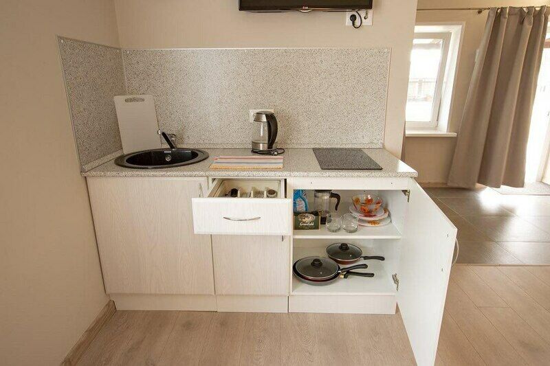 Каждый номер оснащён всем необходимым для приготовления пищи, мангал.