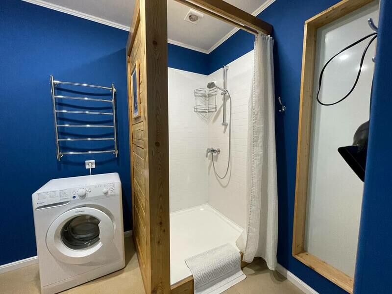 Гостевой дом №2 рассчитан на 15 человек (10 спальных мест): 2 комнаты (одна изолированная), гостиная, кухня, душевая, 2 туалета, 2 раздевалки.. Есть веранда, закрытая парковка. Финская сауна, хамам и русская баня. Мангальная зона.