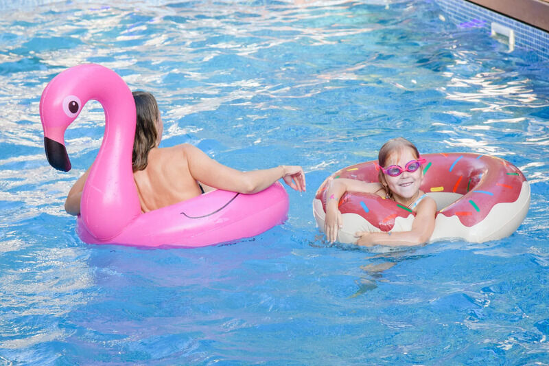 В ночное время бассейн закрыт мембраной, будьте осторожны если решите нырнуть в неурочное время работы бассейна. Дети до 10 лет, находящиеся в воде, должны быть под постоянным присмотром взрослых.