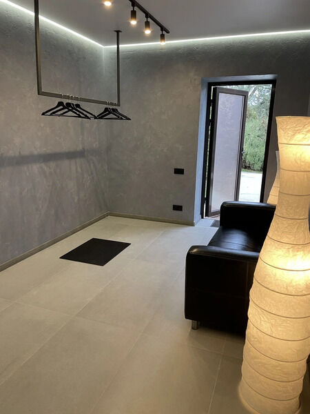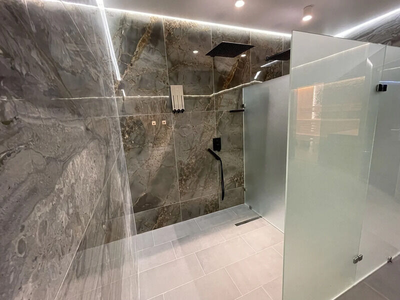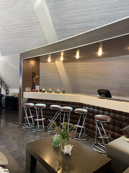 Комплекс вмещает от 2–х до 12 человек. Минимальный заказ: 2 часа. Состав: финская сауна, хаммам, мокрая зона отдыха, обеденный зал с зоной отдыха, 2 санузла, раздевалки, массажный кабинет, уличная чилл–зона с диваном. Бассейн — территория общего пользования. Включено в стоимость: простыни, чай, вода, посуда, микроволновка, акустическая система.