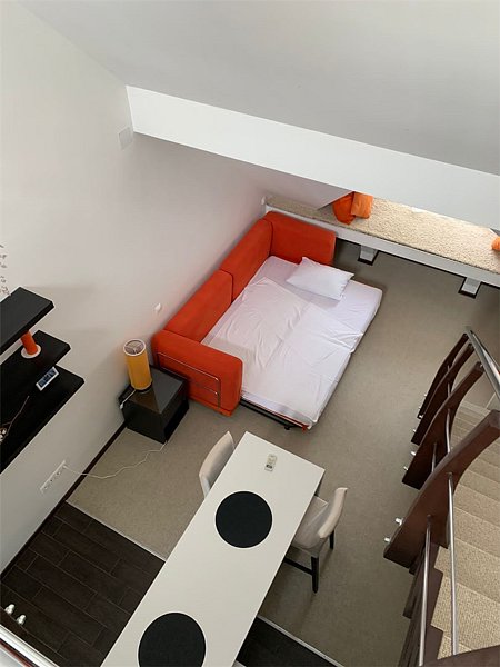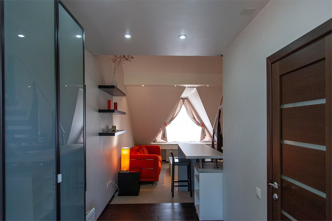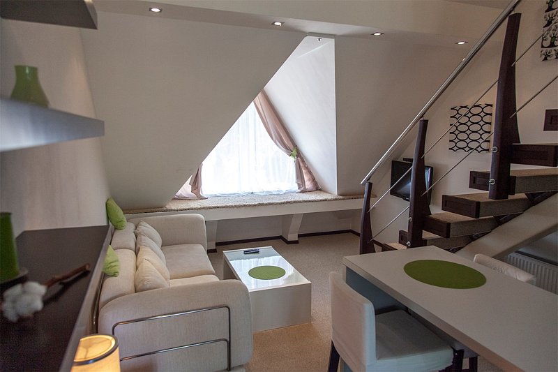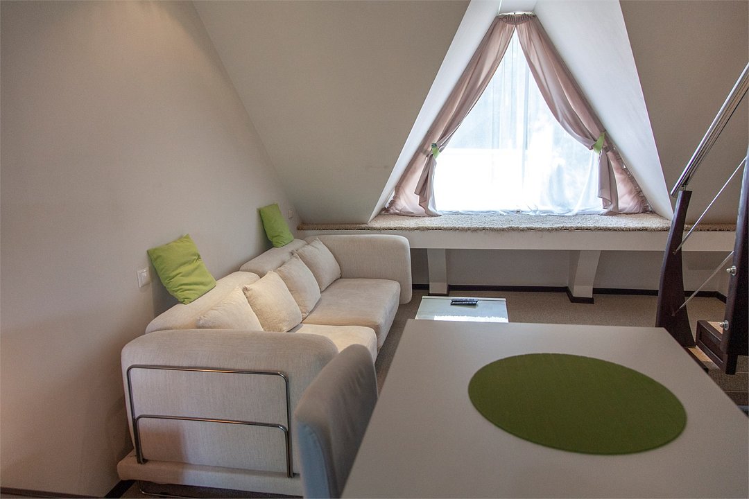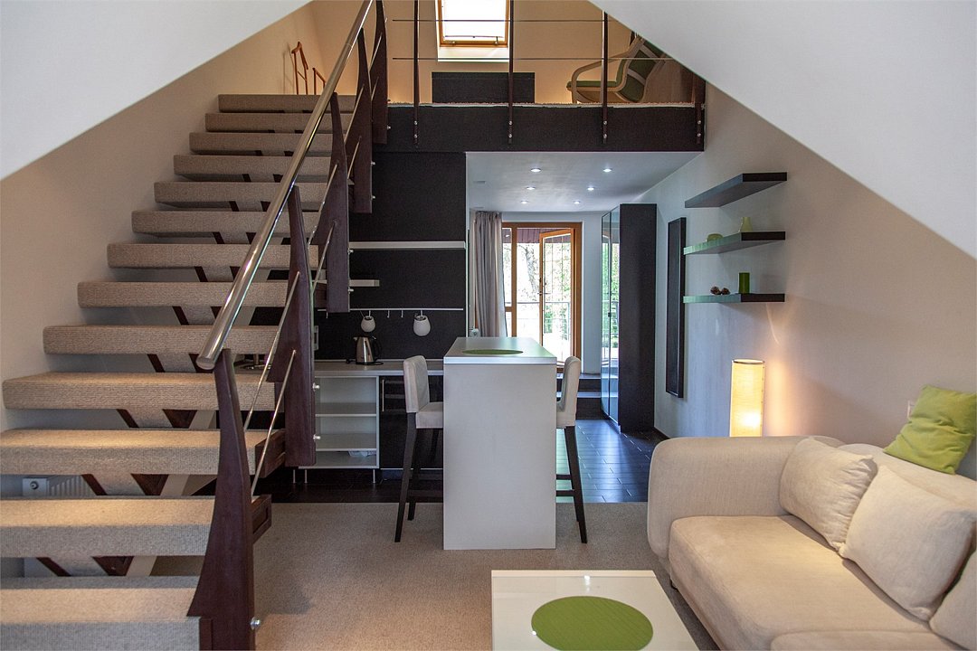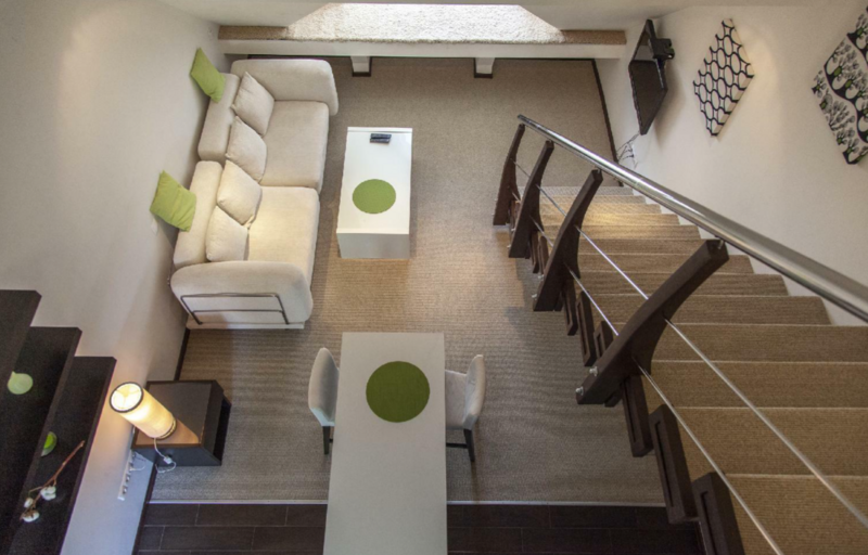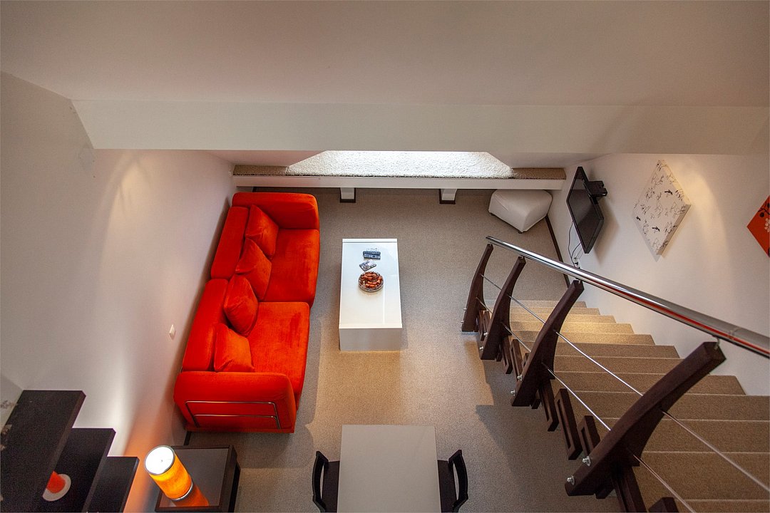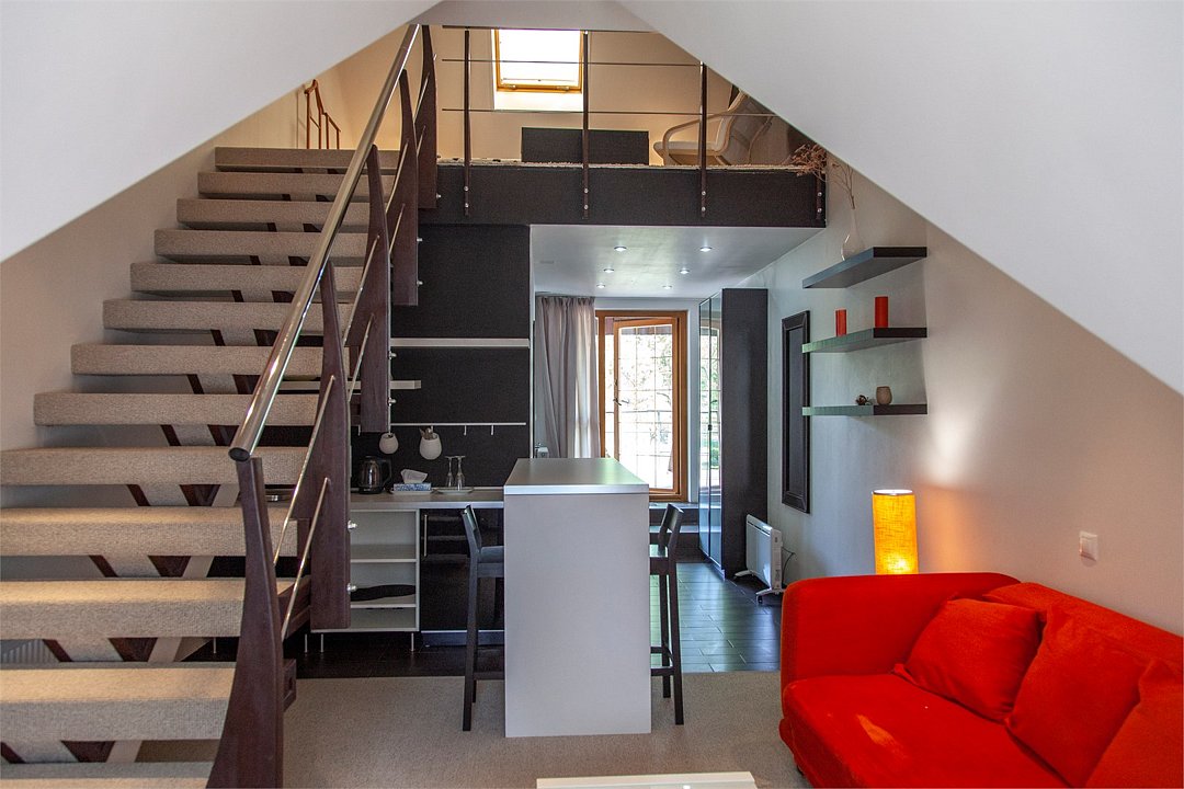 Комфортабельный двухуровневый номер с выходом на верхнюю террасу гостиницы.