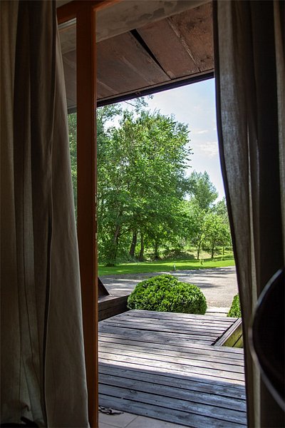 Номер имеет два выхода: на парк и на парковку. Удобен и безопасен для размещения с маленьким ребенком.