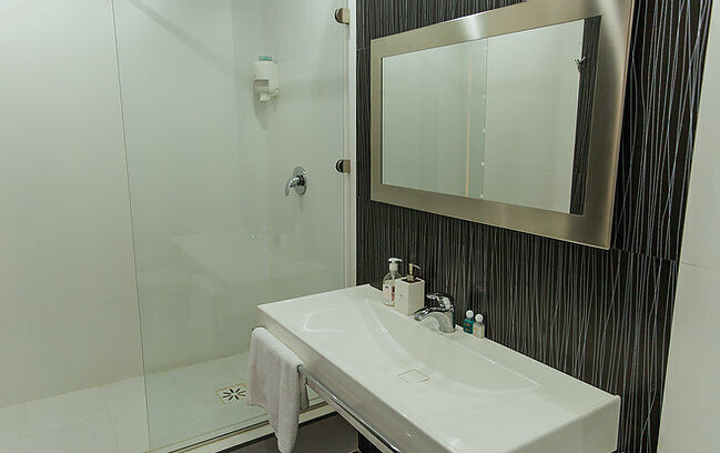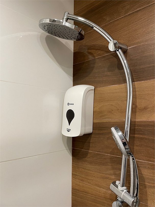 В душевой предоставляются шампунь/кондиционер, мыло в диспенсерах. Полотенца в номере на двоих человек.