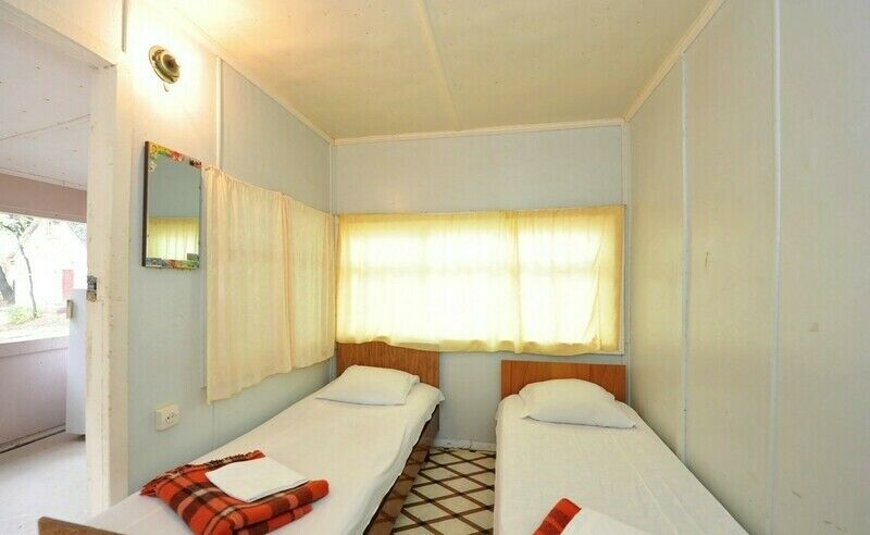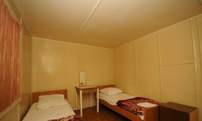 Тумбочки, электроплитка, кондиционер, холодильник, посуда, кухонная мебель, удобства на территории: душ, стационарный туалет, биокабинки.