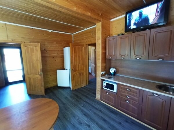 Шестиместный двухэтажный домик прекрасно подходит для отдыха вашей семьи. Если планируете посетить базу отдыха «Лесная», то можете смело бронировать этот коттедж. Все необходимое уже есть! Чистое постельное бельё, полотенца, посуда и другое... А еще, по обыкновению, к домику обязательно есть беседка и мангальная площадка!
