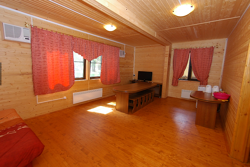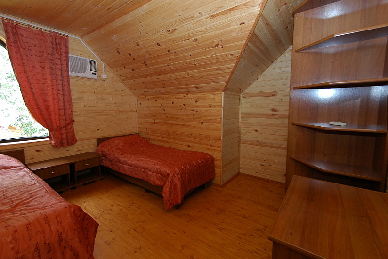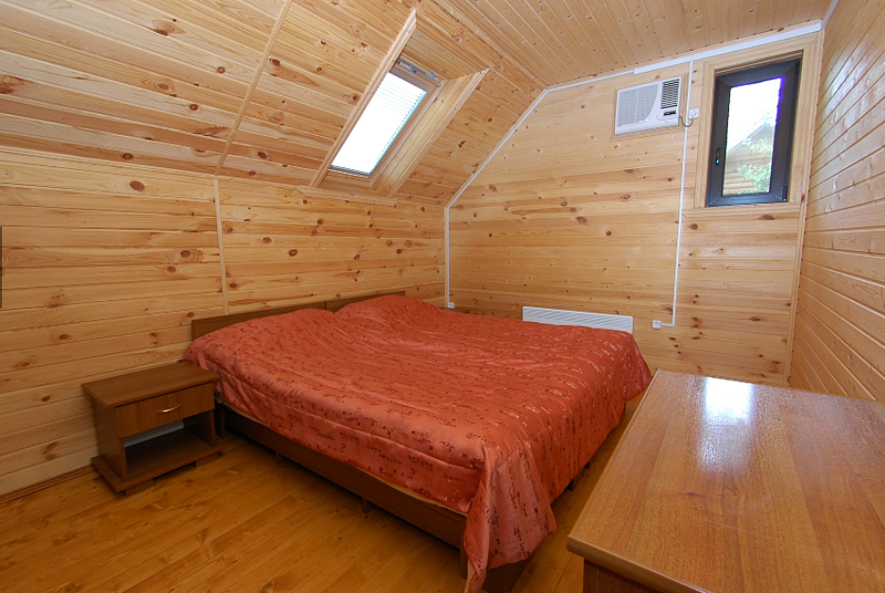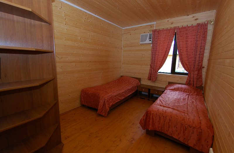 Двухэтажный коттедж с шестью спальнями и огромной гостиной для очень большой и дружной компании. Дом оборудован системой автономного отопления, кондиционирования, горячего и холодного водоснабжения, канализацией. По вашему желанию специально спроектированные односпальные кровати в течении пяти минут могут быть объединены в двуспальные. А удобные ортопедические матрасы позволяют продолжить полноценный отдых и ночью. Во всех комнатах наряду с кроватями, имеется шкаф, а в общей комнате — холодильник.
