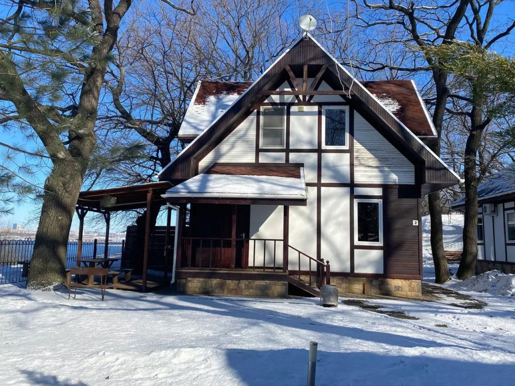 - У дома № 2 — 8 спальных мест: на втором этаже 2 комнаты, одна на 4 человека (двухместный диван и 2 односпальных кровати, которые можно сдвинуть) и вторая на 2 человека (2 односпальные кровати, не сдвигаются), на первом этаже 2-х местный диван. На первом этаже расположена кухня, объединенная с гостиной и барная стойка. В доме: ТВ, холодильник, чайник, микроволновка, кондиционер, набор посуды, вся необходимая мебель, душ и туалет на каждом этаже, постельное белье. Дом хорошо отапливается. Большое место для застолий. У каждого дома есть своя беседка с видом на Волгу и мангальной зоной.