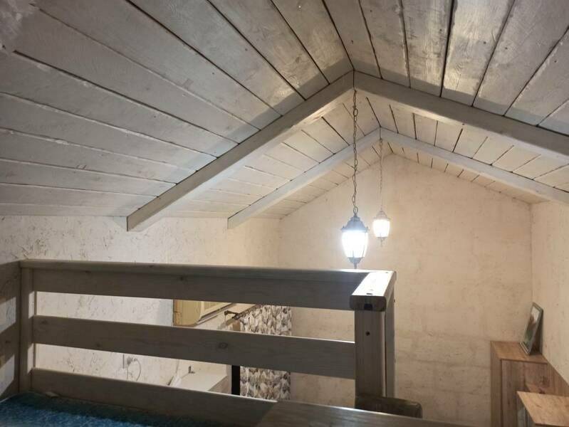 В доме две изолированные спальни, двуспальная кровать на мансарде и диван в кухонной зоне. В кухне есть вся необходимая посуда, микроволновка, сплит-система и холодильник. Максимум 8 человек.