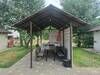 В доме две изолированные спальни, двуспальная кровать на мансарде и диван в кухонной зоне, кухня с необходимой посудой, микроволновка, сплит-систма, холодильник, беседка с мангалом и мини-кухней, мангал.