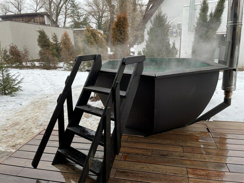 Чан набирается водой и прогревается в течение 4х часов путем дровяного топления. По желанию гостей в чане могут быть заварены дубовые ветки, либо иные отвары из трав.