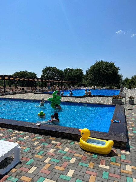 Тип бассейна: детский бассейнРядом с бассейном: шезлонги, зонтикиБассейн для детей с водными игрушками и удобной зоной отдыха расположен рядом со взрослым.