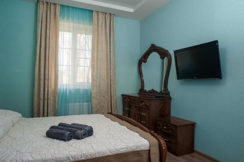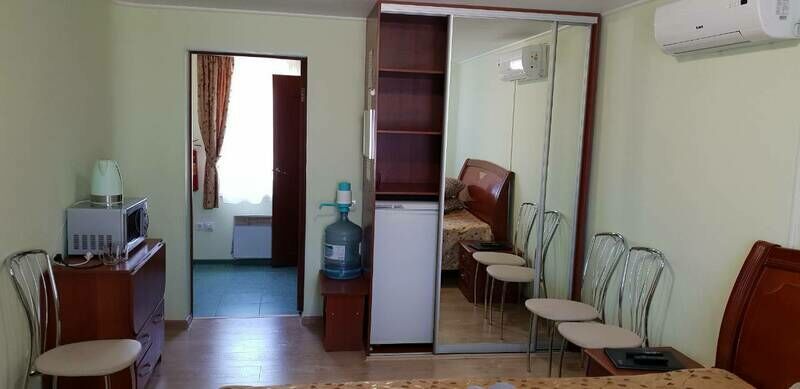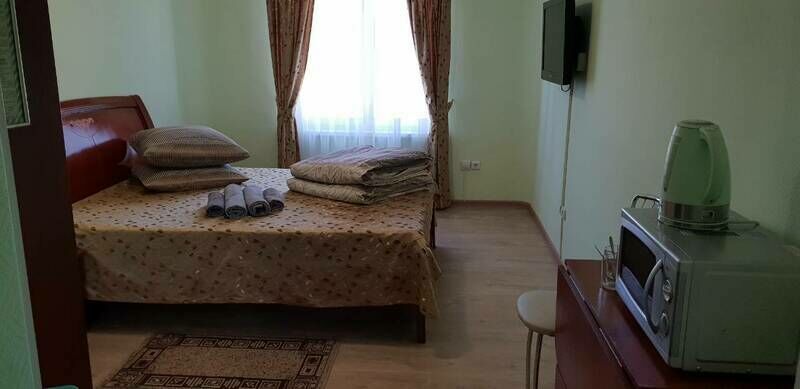 ВСЕ УДОБСТВА: туалет, душ, холодильник, СПЛИТ-СИСТЕМА, платяной шкаф-купе, чайник, телевизор, двуспальная кровать, стол, микроволновая печь, эл. чайник, 4 бокала, 4 стула - РАСПОЛОЖЕНЫ НА ПЕРВОМ ЭТАЖЕ.