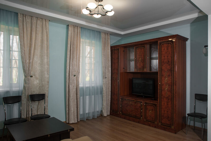 Оборудование гостиной: мягкая раскладная мебель, шкаф-купе, журнальный стол, телевизор, мини-бар, чайник, набор посуды на две персоны. Спальная комната: двуспальная кровать, прикроватная тумбочка, телевизор, СПЛИТ-СИСТЕМА. Туалетная комната: джакузи, биде, унитаз, раковина, зеркало, фен, разовые предметы личной гигиены.