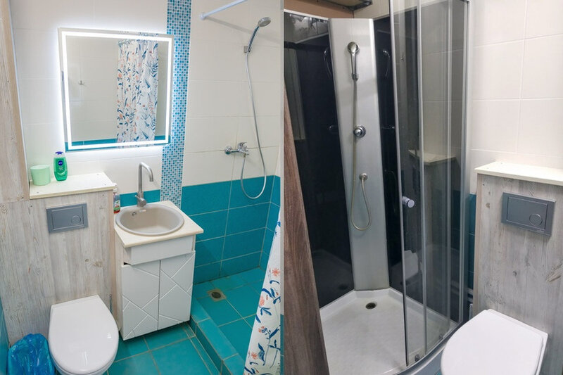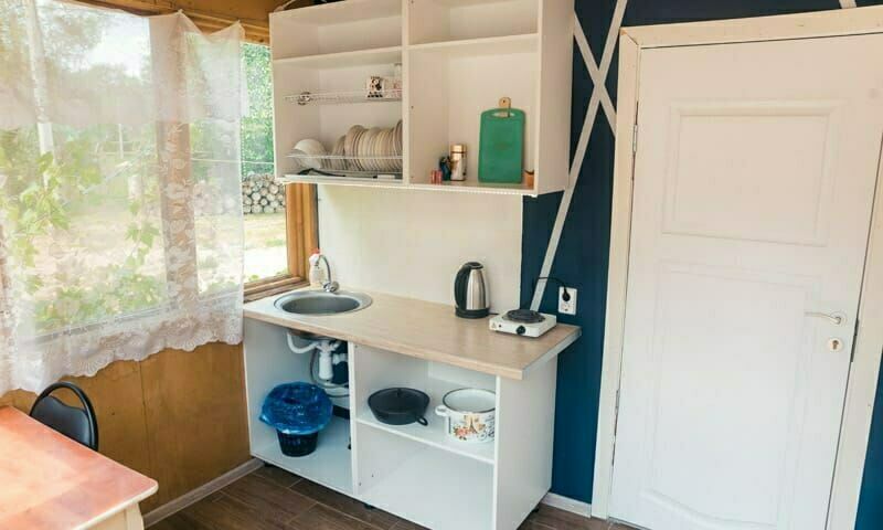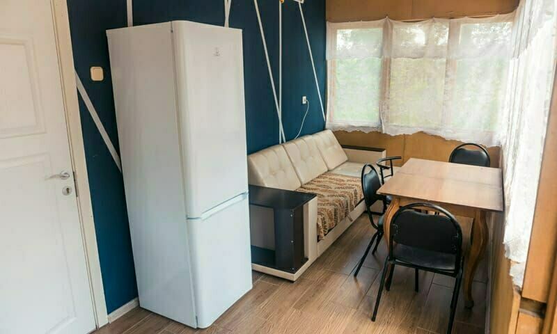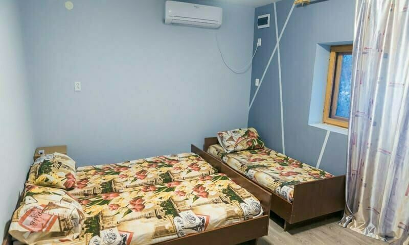 Три семейных двухкомнатных домика с верандой. Двухкомнатные дома с просторной верандой. В первой спальни двуспальная кровать или раскладной диван, во второй комнате три полуторных кровати или двухспальная кровать и полуторная. Телевизор, новая инверторная сплит-система тепло-холод и кондиционер в комнате. Душевая и туалет. На веранде раскладной диван, стол и полноценная кухня с посудой и столовыми приборами на 6 человек, а также со всем необходимым для отдыха и жизни, включая холодильник, электрочайник, электроплитку телевизор. Возле дома столик, лавочки, мангал. Имеется выход к пляжу, до воды не более 50 метров.