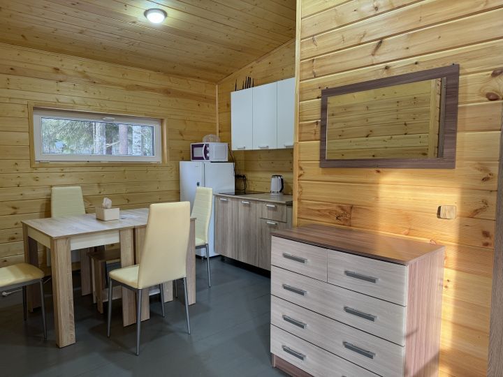 Для размещения предлагаются уютные глэмпинги, рассчитанные на 3 или 5 человек. Каждый глэмпинг включает спальную зону, просторную кухню-гостиную с полным гарнитуром и обеденной группой, душевую кабину и санузел. Перед каждым домом обустроена комфортная зона барбекю с мангалом, где можно приятно провести время на свежем воздухе.