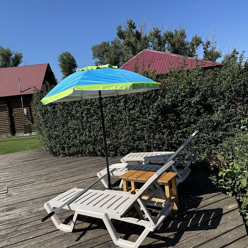 В коттедже есть большая терраса, на которой можно утром выпить чашечку ароматного чая или кофе. Функционирует охраняемая стоянка. Одновременно в комплексе может проживать только одна компания туристов, поэтому никто не сможет помешать уединению и умиротворенному отдыху в лоне первозданной природы.