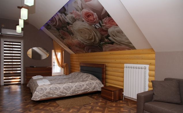 Разместиться гости могут в коттеджах, либо в номерах, оснащенных всем необходимым для комфортного проживания: современной мебелью и техникой. Отдохнуть постояльцы могут за игрой в бильярд или в настольный теннис, посетив русскую баню, поплавав в открытом бассейне или позагорать на шезлонгах.