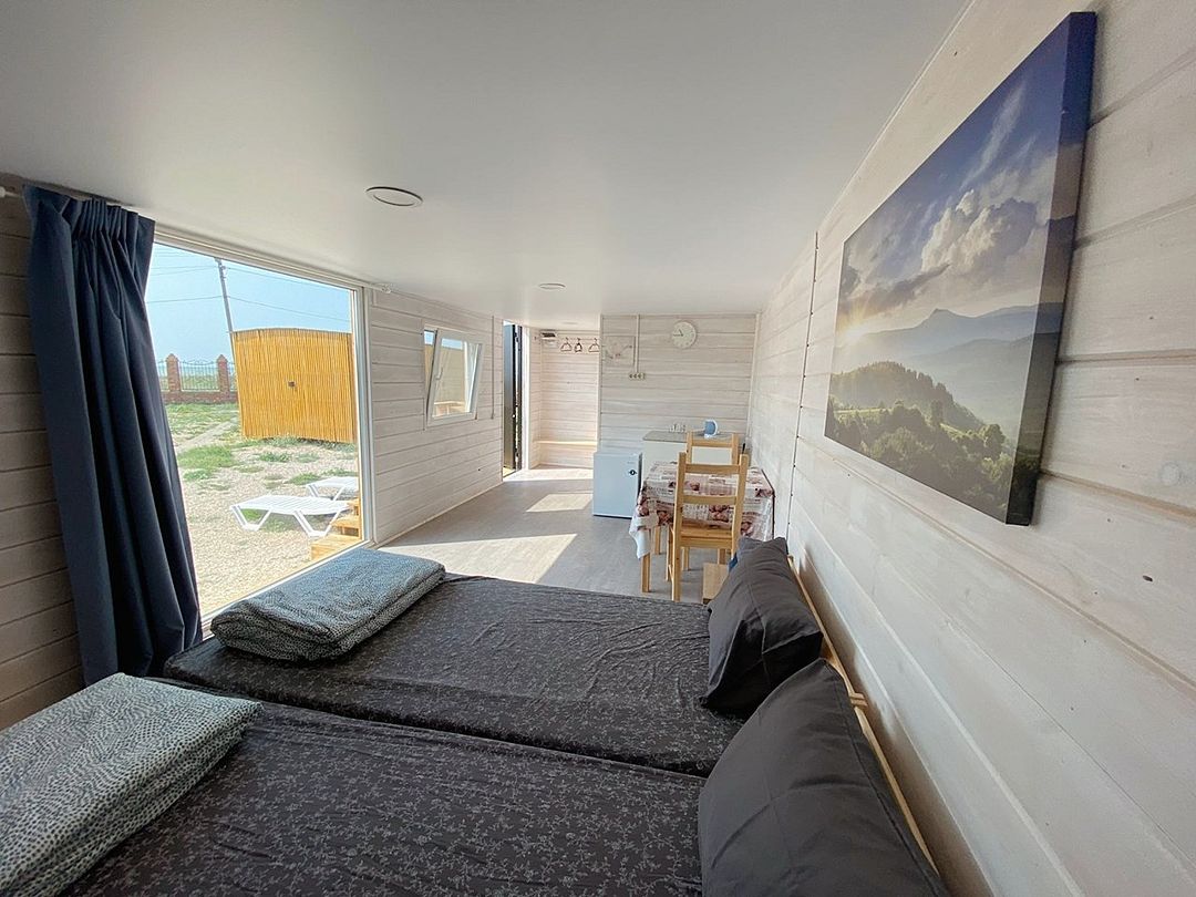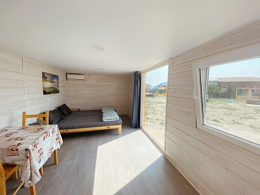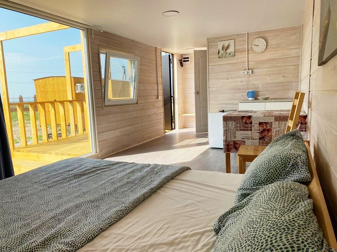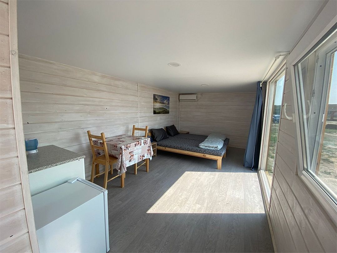 Wi-Fi, душевая кабина, санузел, водонагреватель, банные полотенца, две односпальные кровати, стулья, вешалки, обеденный стол, багажная тумба, зеркало, унитаз, раковина, отдельный вход в номер, вид на море, тумба, сплит-система, мини-холодильник, можно с питомцамиВ домике