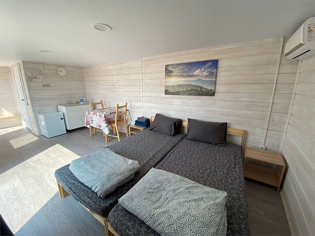 Комфортабельный домик с двумя раздельными кроватями. Смена белья и полотенец 1 раз / 5 дней. Уборка 1 раз / 3дняУслуги и удобства