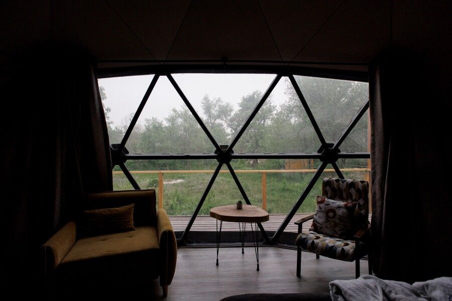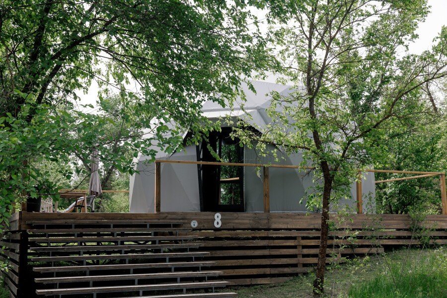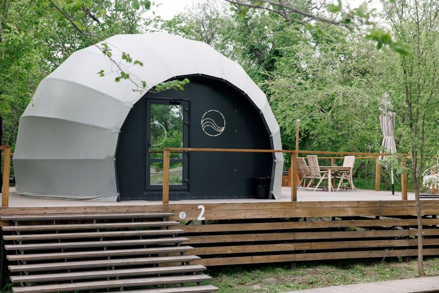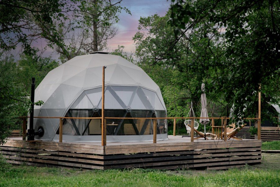 • Купольный дом «Сфера Геовуд» с панорамным окном, Глэмпинг Три Воды, станица Кочетовская