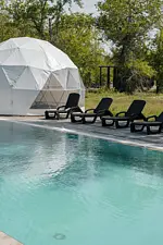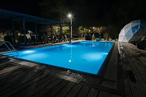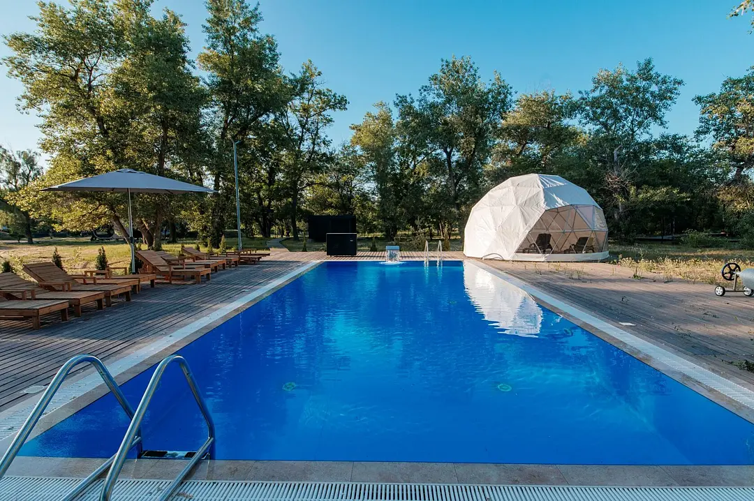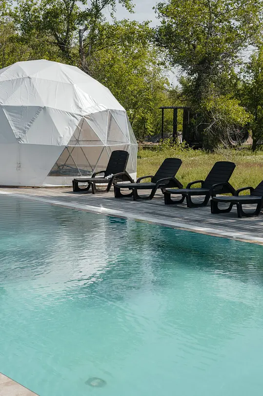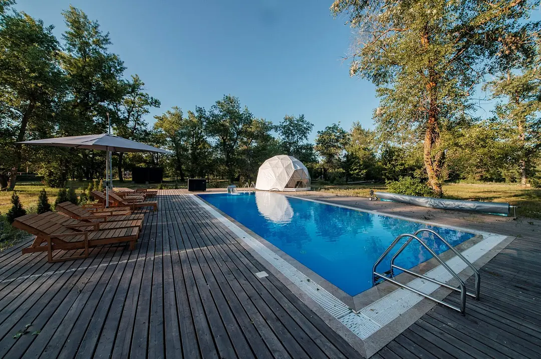 Бассейн доступен для всех гостей, которые проживают в глэмпинге.