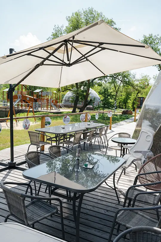 Для юных гостей здесь установили безопасную детскую площадку и организовали детский клуб с развлечениями. А если вы любите активный отдых, сможете прокатиться на квадроциклах по лесным тропам, отправиться на рыбалку или освоить сапбординг на глади Дона.
