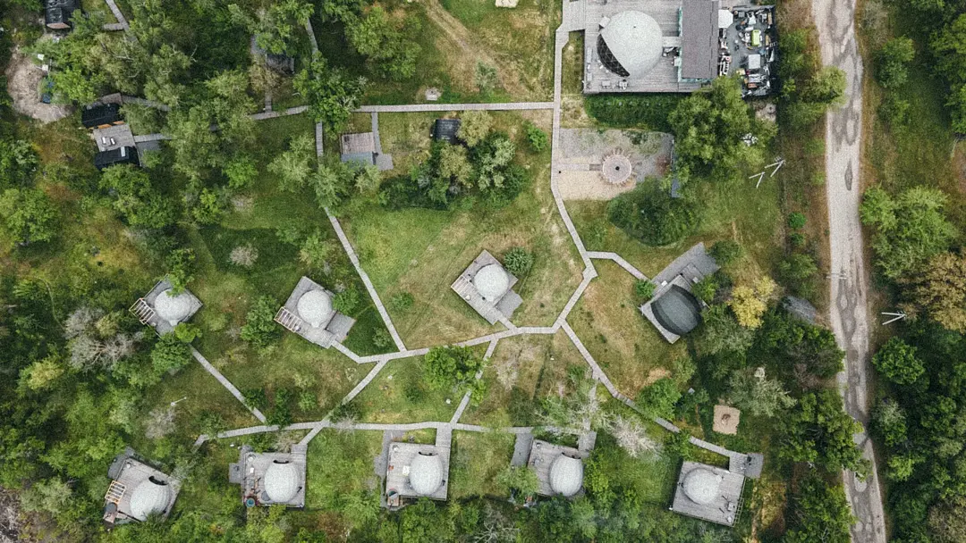 Купольный дом «Улитка» с купелью и панорамным видом на природу идеально подойдёт для пары или небольшой семьи.