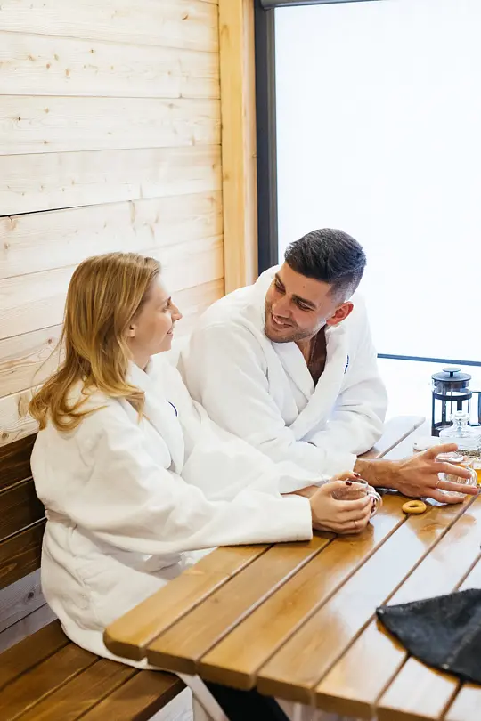 К Вашим услугам все атрибуты настоящей парной: веники дубовые, березовые, с полынью, душистый чай. А после парной есть возможность окунуться в открытый бассейн.