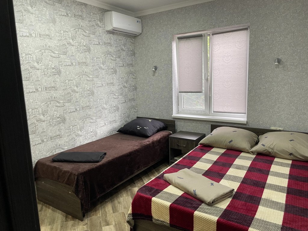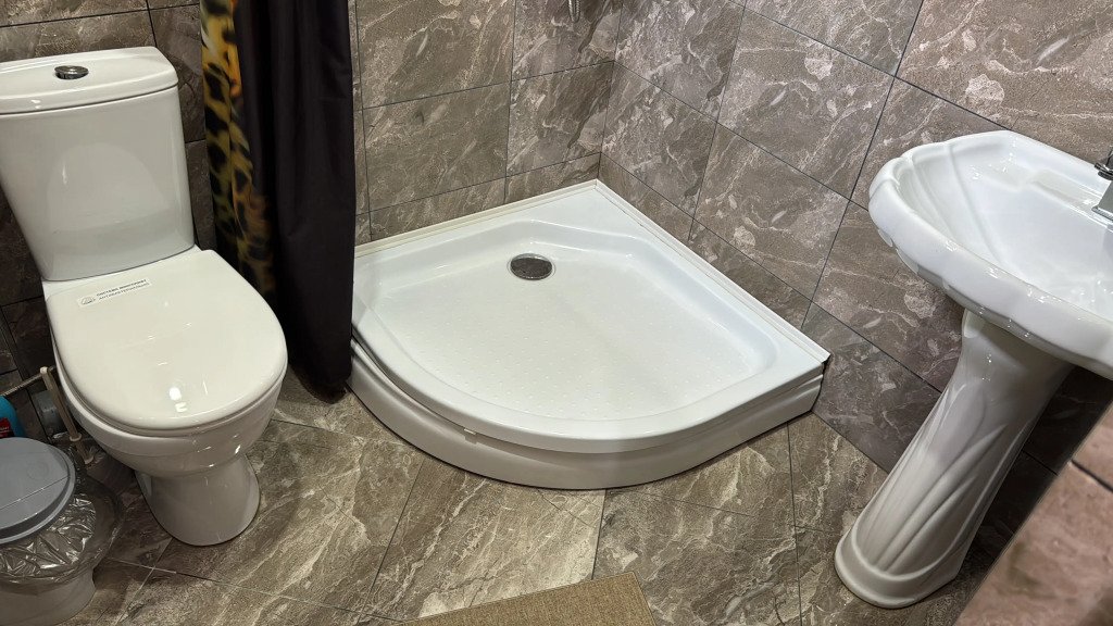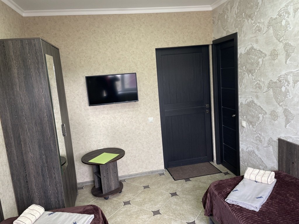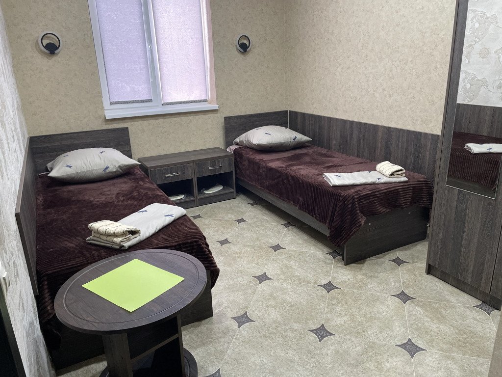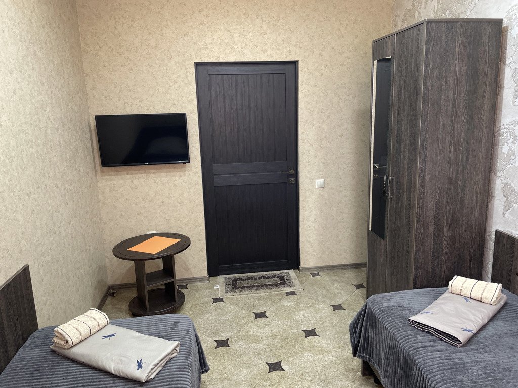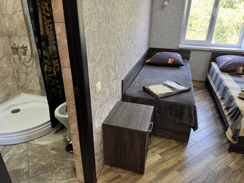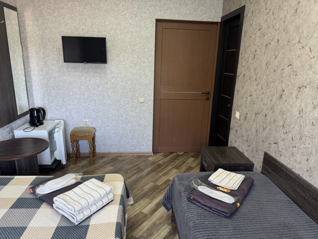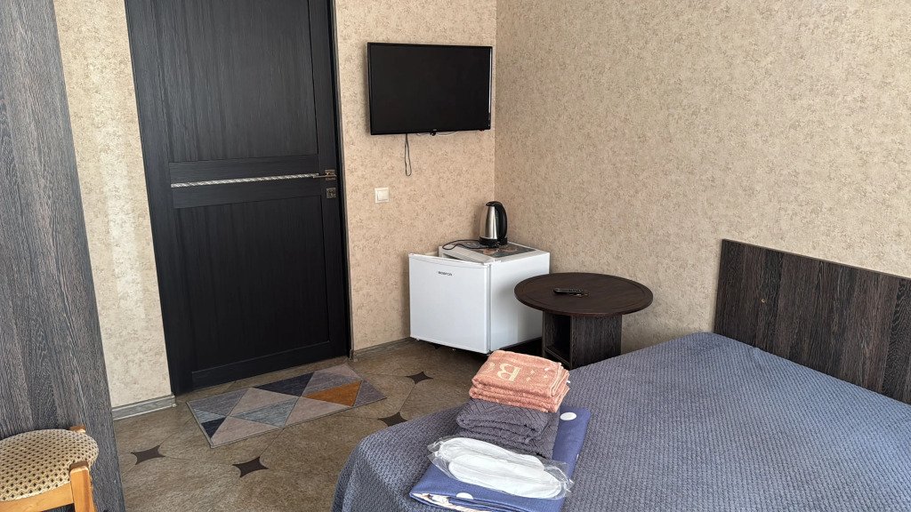 Во всех номерах: телевизор, сплит-система, душ, туалет, раковина, тумбочки и журнальный столик.