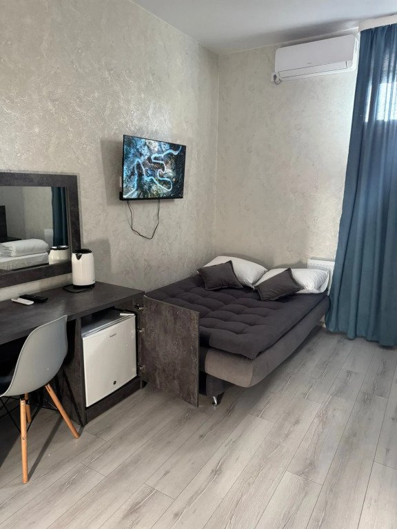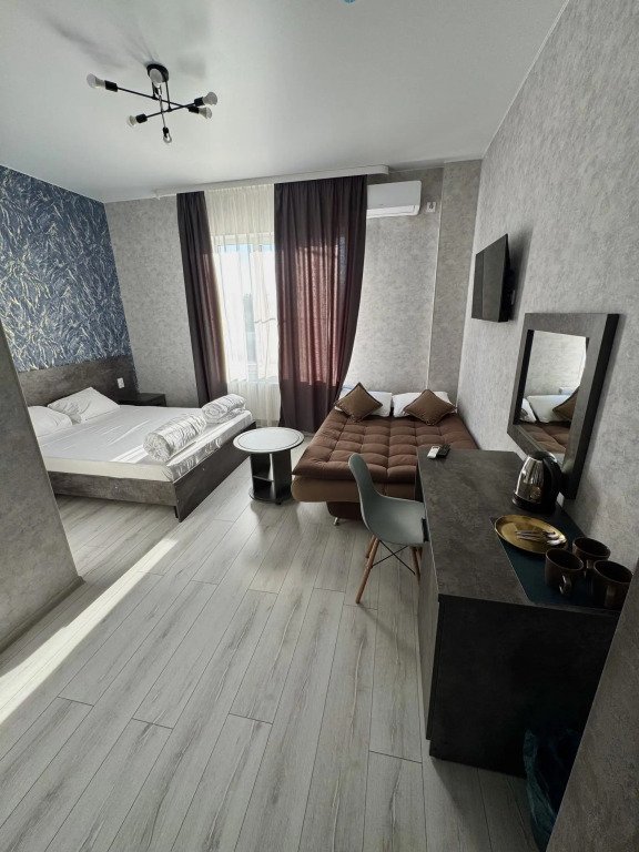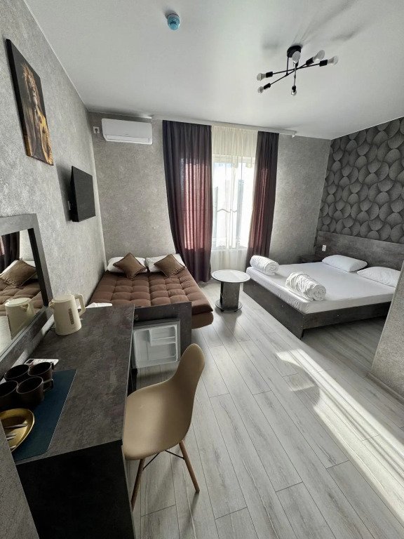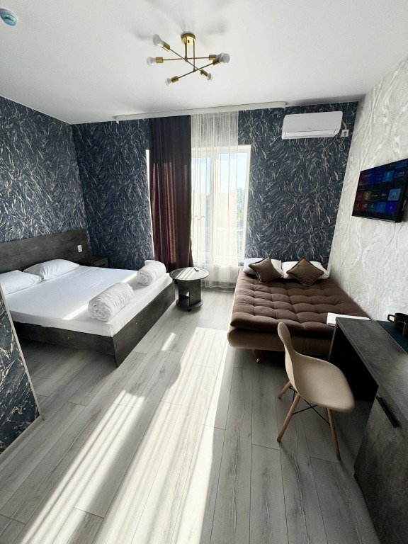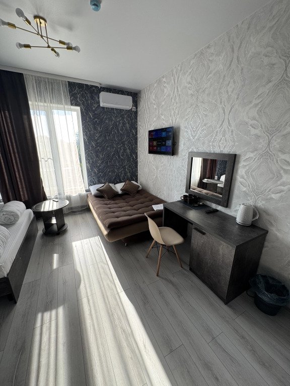 Номера оформлены в современном стиле и оснащены удобствами. В распоряжении гостей Смарт ТВ с доступом к платформам Ivi, Окко и другим. В каждом номере есть свой душ, туалет, чайный комплект и холодильник.