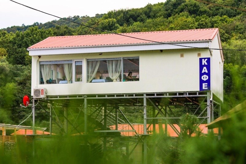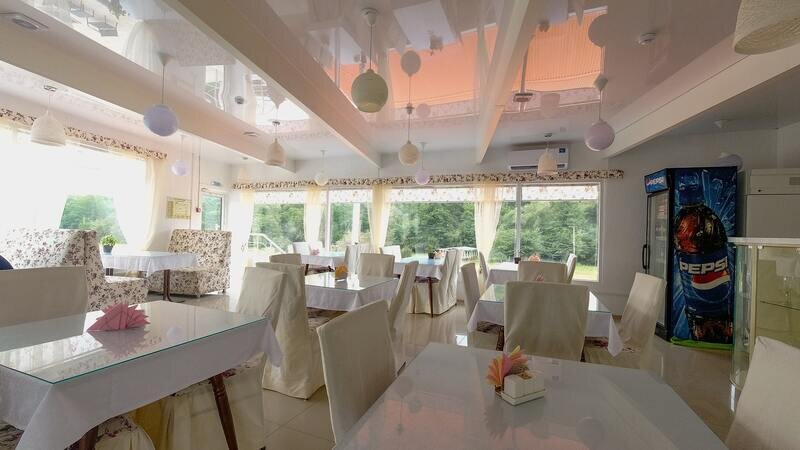На территории турбазы открыто кафе-мороженое, где предлагаются различные напитки и закуски на заказ.
