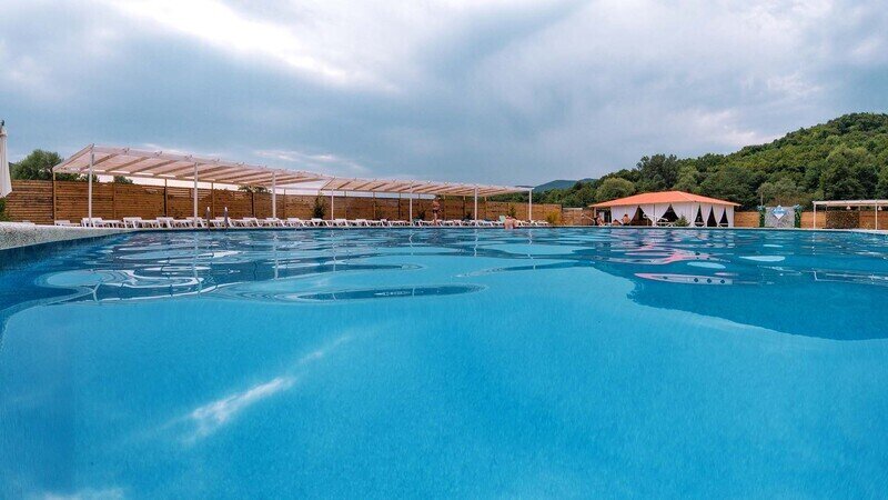 Стоимость посещения — 600₽ за целый день.Открытый плавательный бассейн