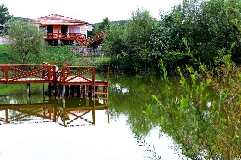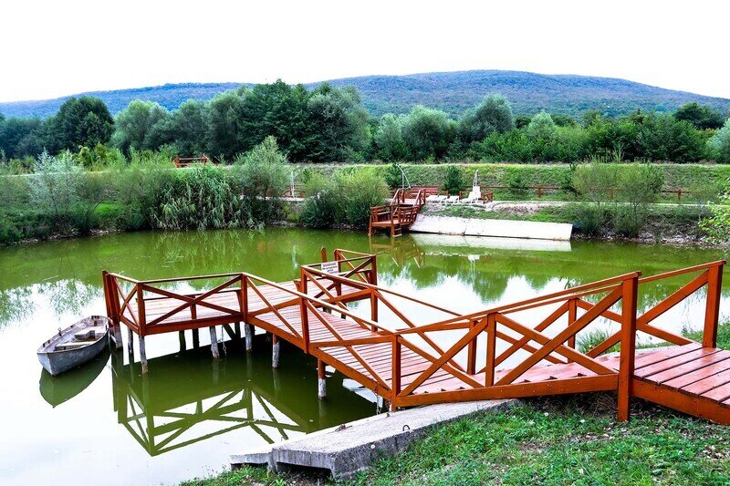 Рядом с базой пруд, в котором водятся окуни, караси и толстолобики.