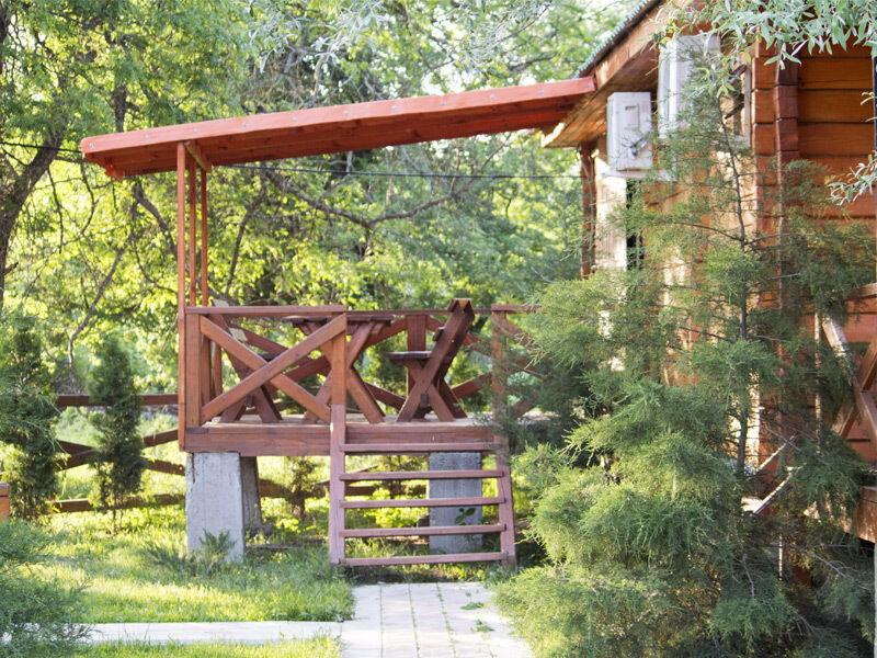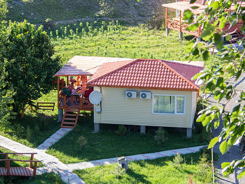 Домики для ночлега на 4-8 человек - прекрасное решение для больших компаний. Интерьер эконом-класса воссоздаёт атмосферу пионерского лагеря с её особой романтикой. Немаловажно, что в каждом домике установлен кондиционер.