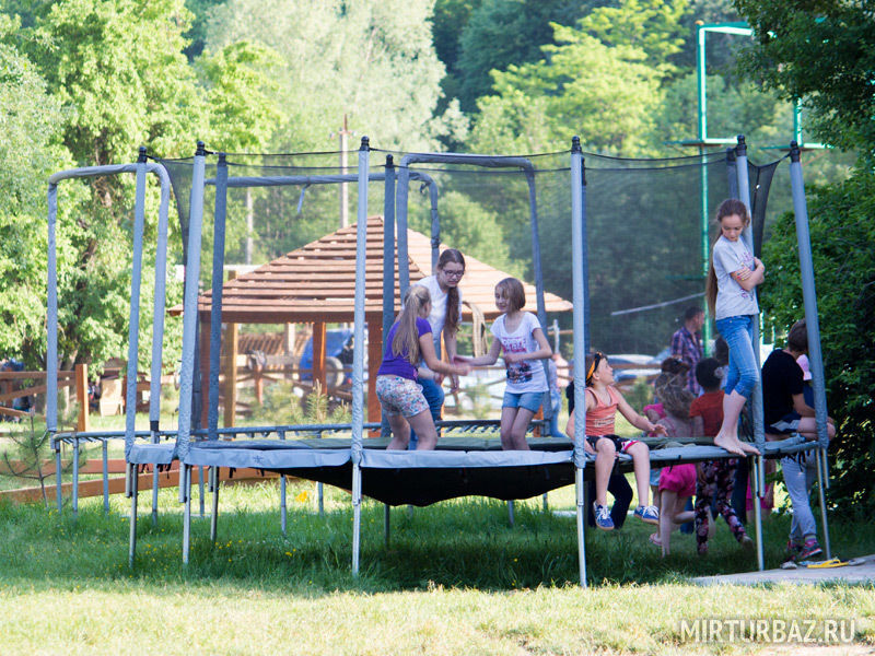 Проживание также включает пользование всей территорией комплекса: гамаками, качелями, батутами, полосой препятствий, песочницей и другими зонами отдыха.