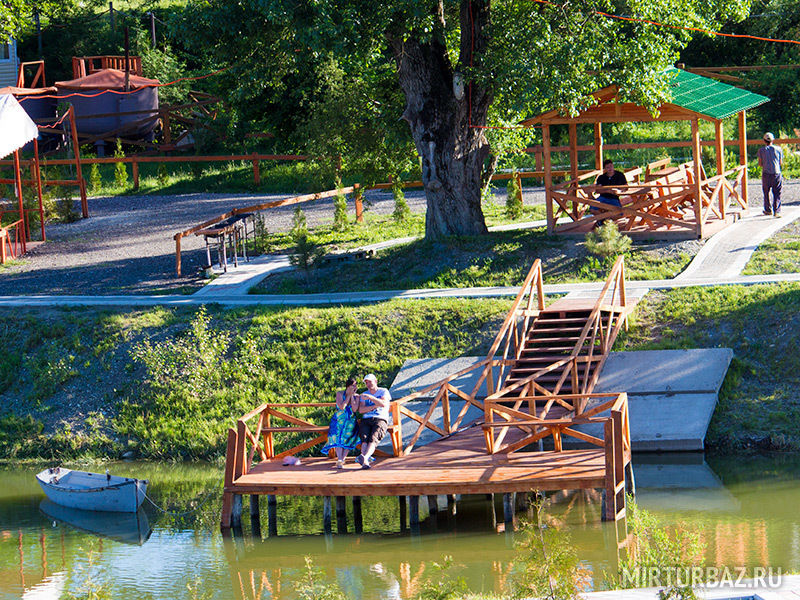 В шаговой доступности находится кухня общего пользования с плитой и микроволновой печью. Рядом расположено озеро, где возможна спортивная рыбалка по принципу «поймал — отпустил» со своей удочкой. Возле номеров оборудована мангальная зона для приготовления блюд на открытом воздухе.
