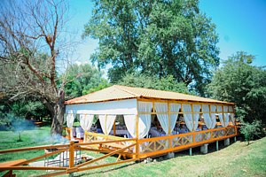 Вместимость 1-150 человек. Для прохладной погоды на территории есть «тёплые беседки», обтянутые прозрачным материалом для защиты от ветра и косого дождя.