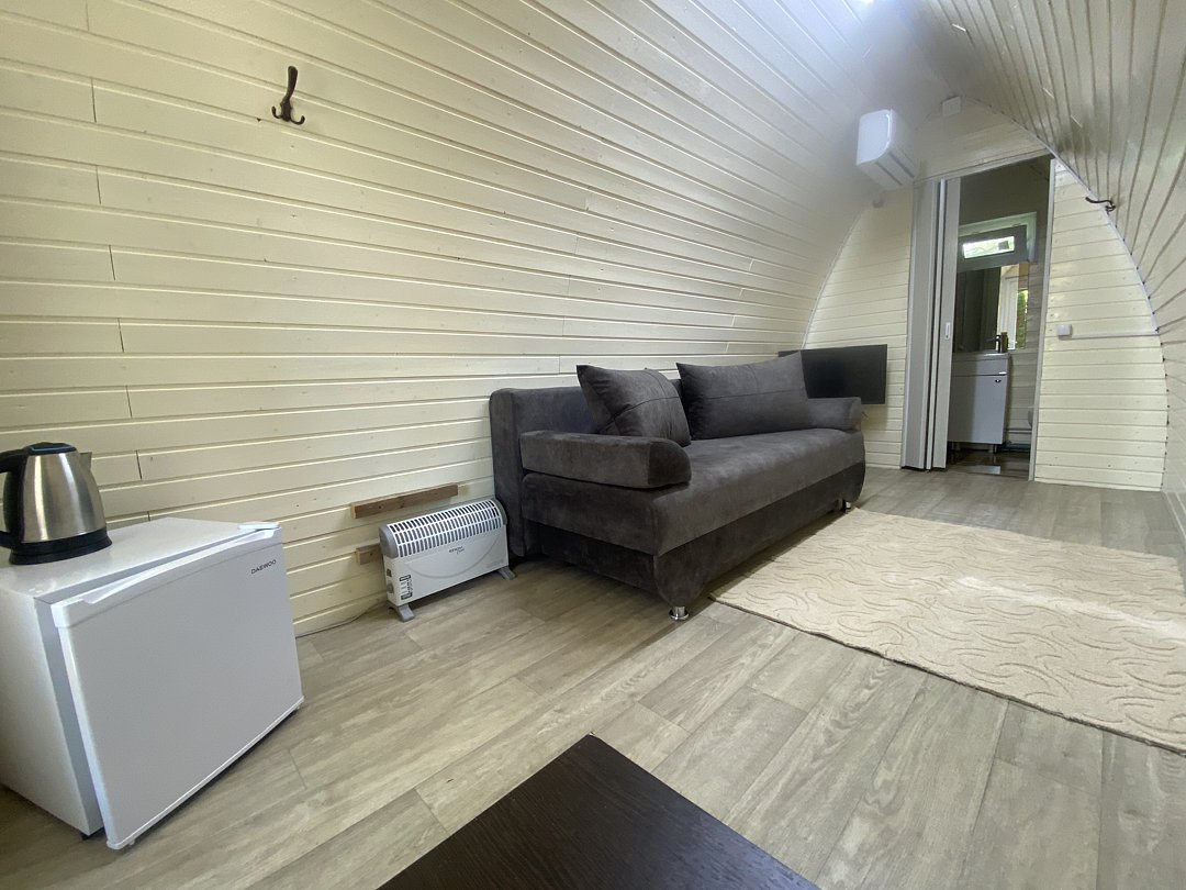 Это компактный и уютный вариант размещения, идеально подходящий для спокойного отдыха вдали от шумных и активных мероприятий комплекса. Внутри находится удобный двуспальный диван, что делает его отличным выбором для пары. Главная особенность Шале — уединённое расположение в собственной тихой зоне, где можно по-настоящему расслабиться и насладиться природой.