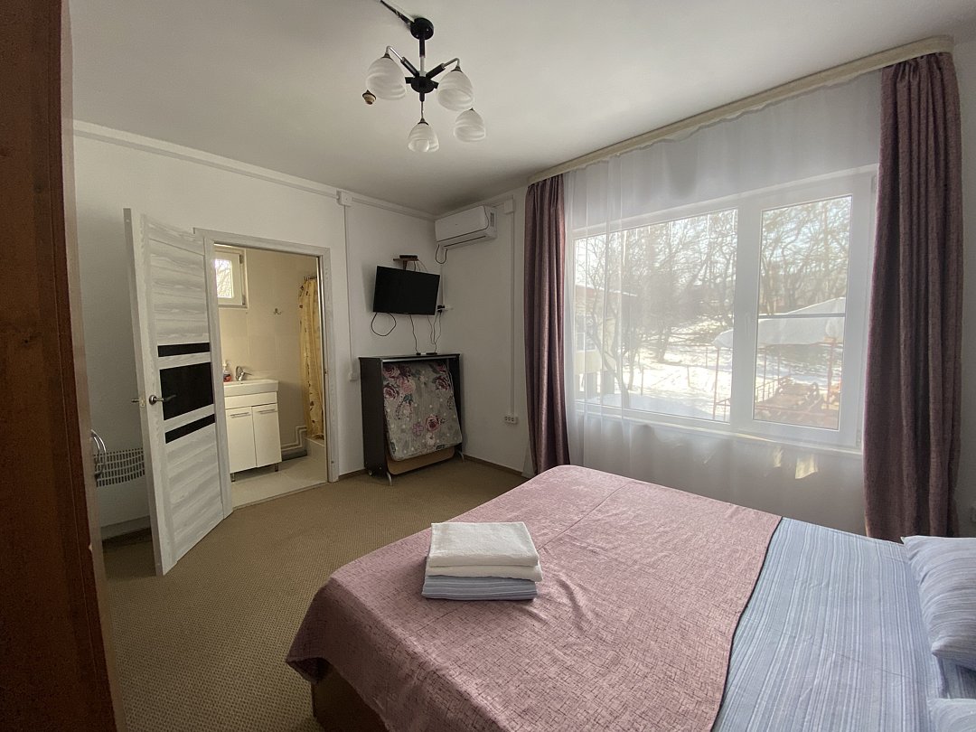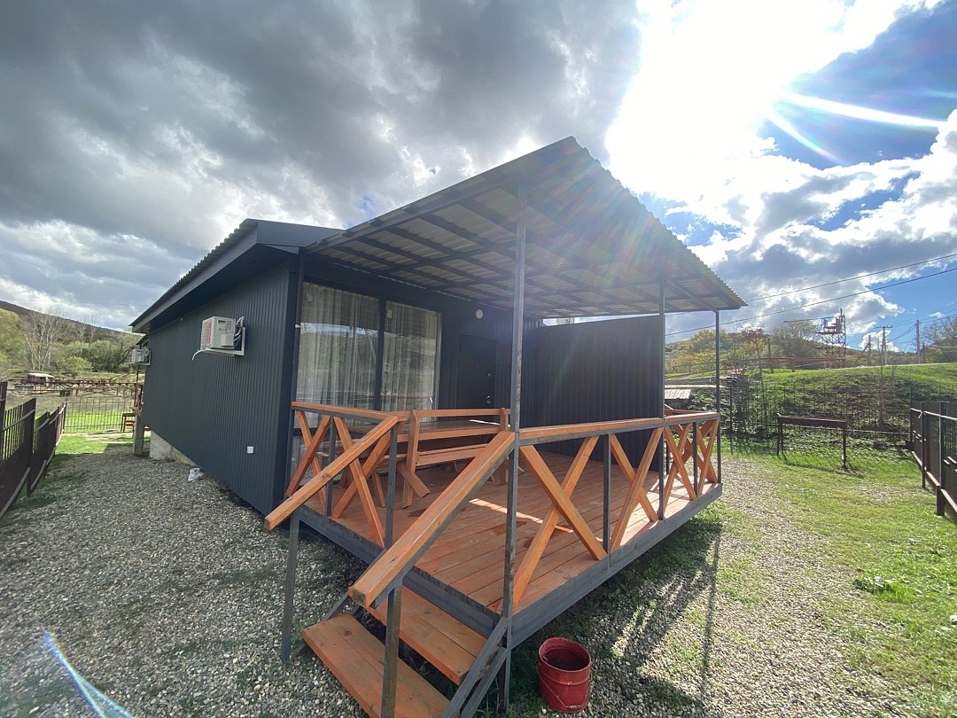 В номере предусмотрены двуспальная кровать и раскладной двуспальный диван. У каждого номера отдельный вход и своя веранда, рядом находится мангальная зона. Парковка расположена в непосредственной близости — автомобиль можно оставить прямо возле домика.