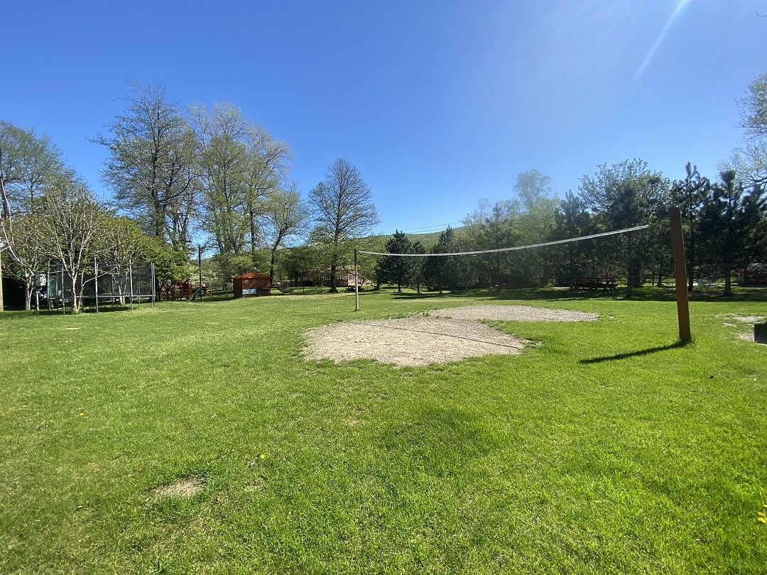 Возле домика находится большая поляна, где удобно проводить время всей компанией, устраивать пикники или играть в активные игры, например в футбол. Если погода будет неблагоприятной, всегда можно комфортно разместиться в просторной гостиной, которая отлично подходит для совместного отдыха.