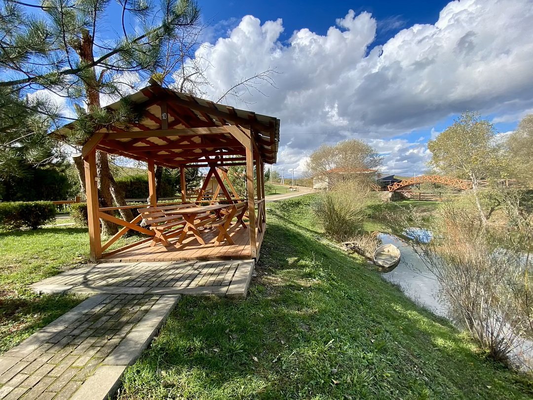 Рядом с домиком находится камачок, мангальная зона и веранда, поэтому всё необходимое для комфортного отдыха на свежем воздухе — буквально в нескольких шагах. Это идеальное место для тех, кто ценит тишину, приватность и атмосферу уюта, но при этом гости могут пользоваться всей большой территорией комплекса и всеми доступными развлечениями.