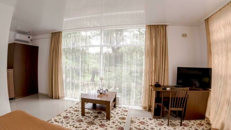 Номер "Люкс", рассчитанные на проживание до 3 человек. Номер оборудован кондиционером, душевой совмещенной с санузлом, спутниковым телевидением.