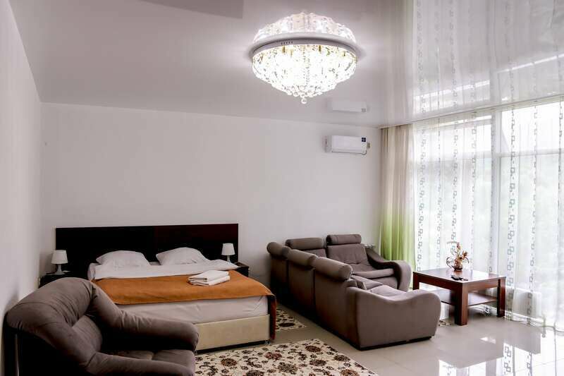 двухкомнатный номер "люкс", рассчитан на проживание до 5 человек. Номер оборудован кондиционером, душевой кабиной с горячей водой, отдельным туалетом и спутниковым телевидением.