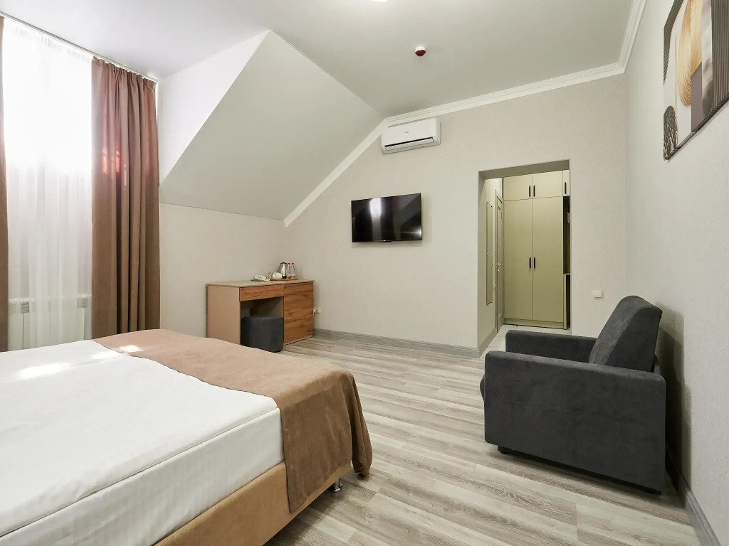 В номере вы найдёте телевизор и халат. Перечисленные услуги есть не во всех номерах.