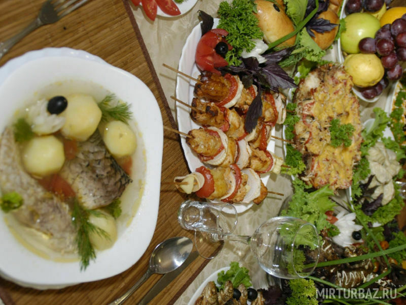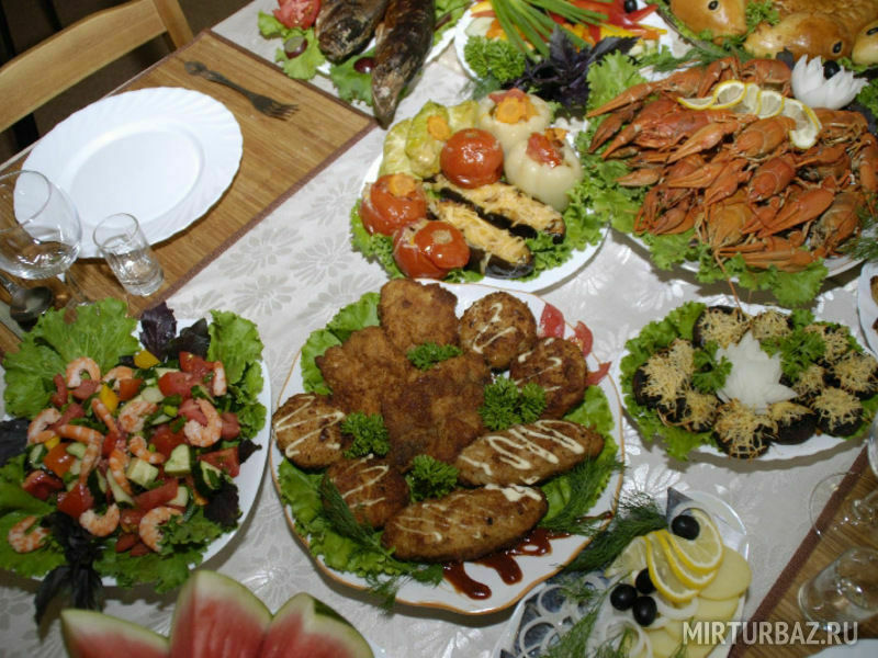 Для гостей организуется комплексное 3-разовое питание. Предлагаются разнообразные блюда волжской кухни.